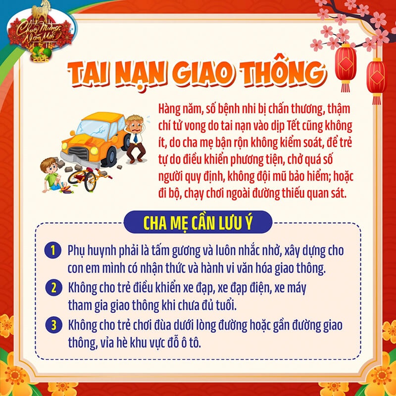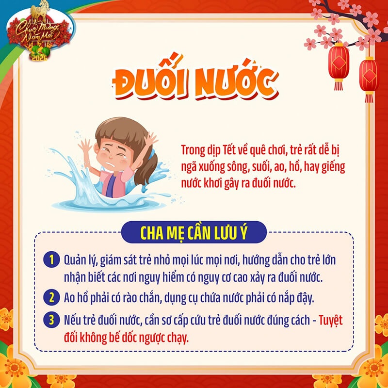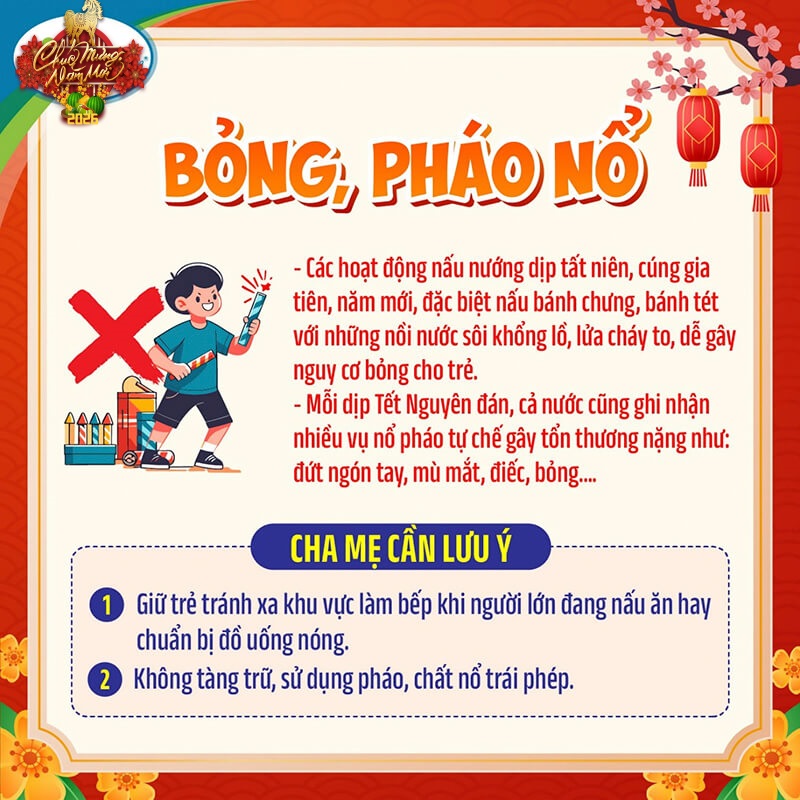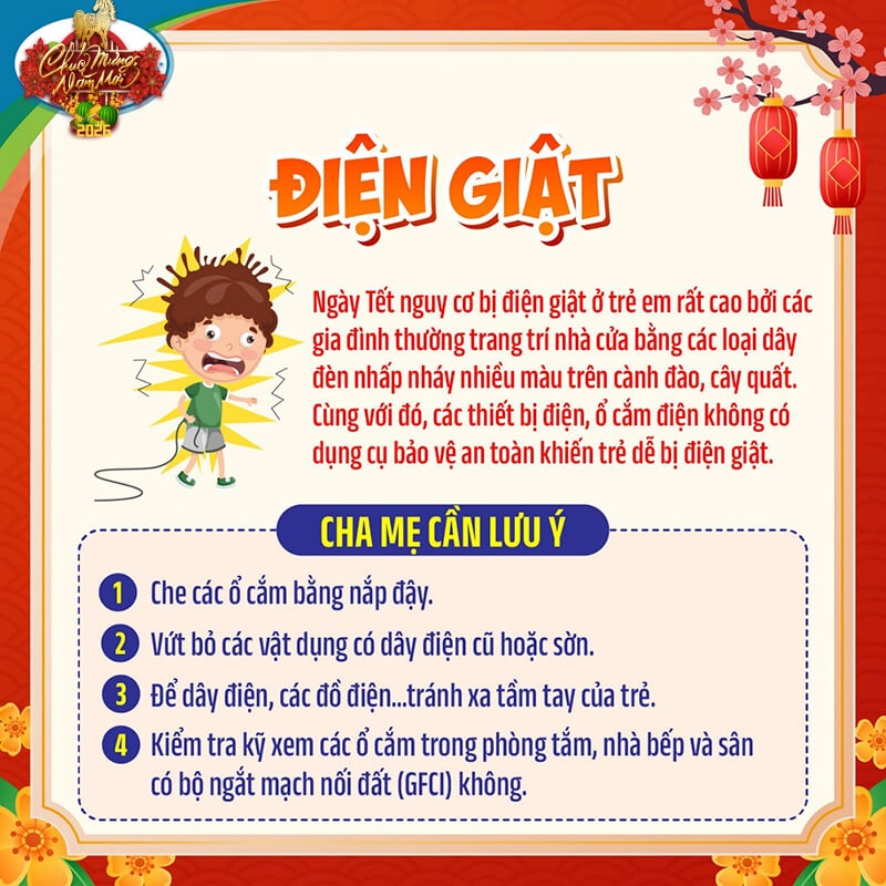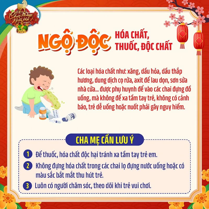 Dịp Tết Nguyên đán 🎆, nhất là những ngày giáp Tết là khoảng thời gian bận rộn đối với các gia đình, người lớn ít có thời gian trông nom trẻ nhỏ. Chính vì vậy, đây là khoảng thời gian trẻ có nguy cơ gặp phải các loại tai nạn không đáng có.