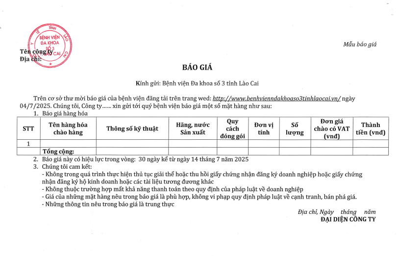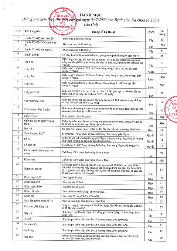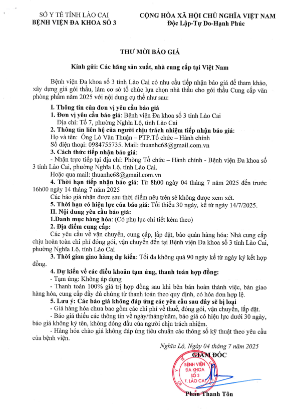 Thư mời báo giá (Cung cấp văn phòng phẩm năm 2025)
