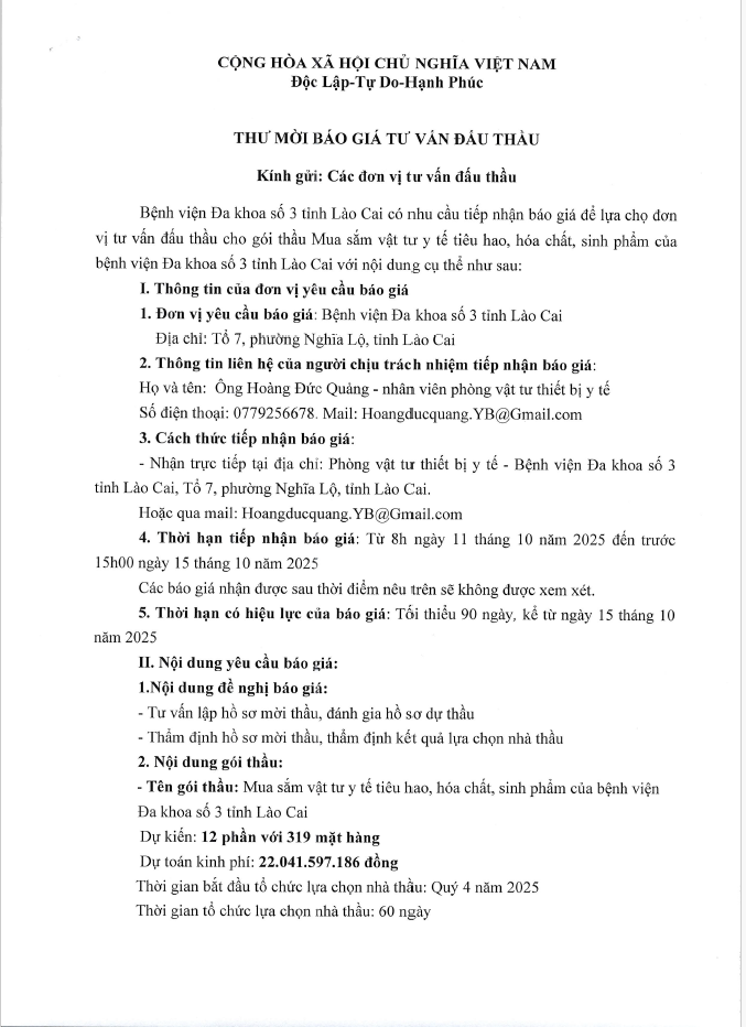 Thư mời báo giá: Tư vấn đấu thầu